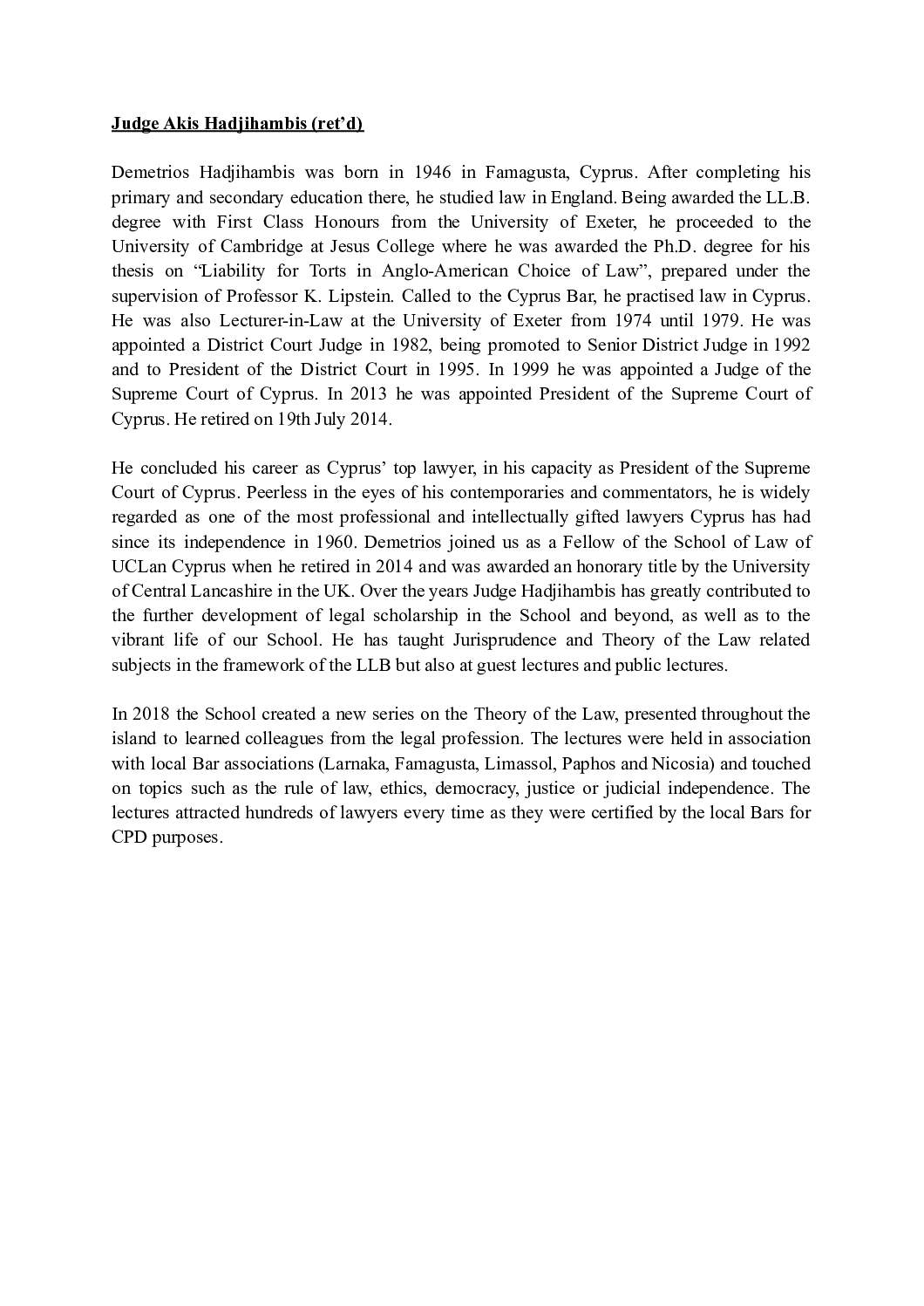 Former President of the Supreme Court of Cyprus and Honorary Fellow, School of Law, UCLan Cyprus.